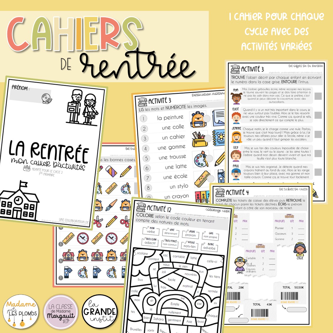 - Un cahier pour le cycle 3 (3e et 4e primaire ou CE2/CM1).