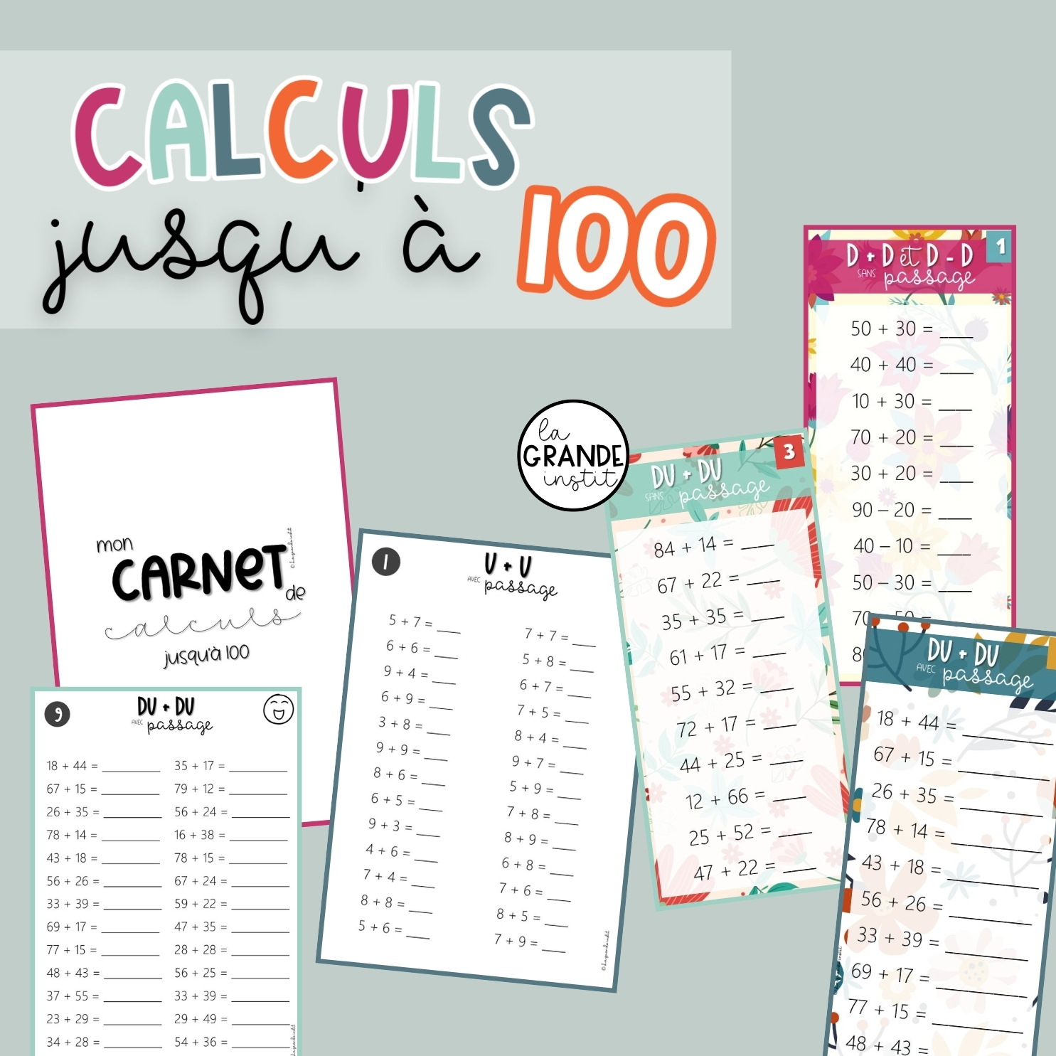 Retrouvez un carnet de 11 faces et des 33 cartes pour travailler les calculs jusqu’à 100 sans et avec passage.
