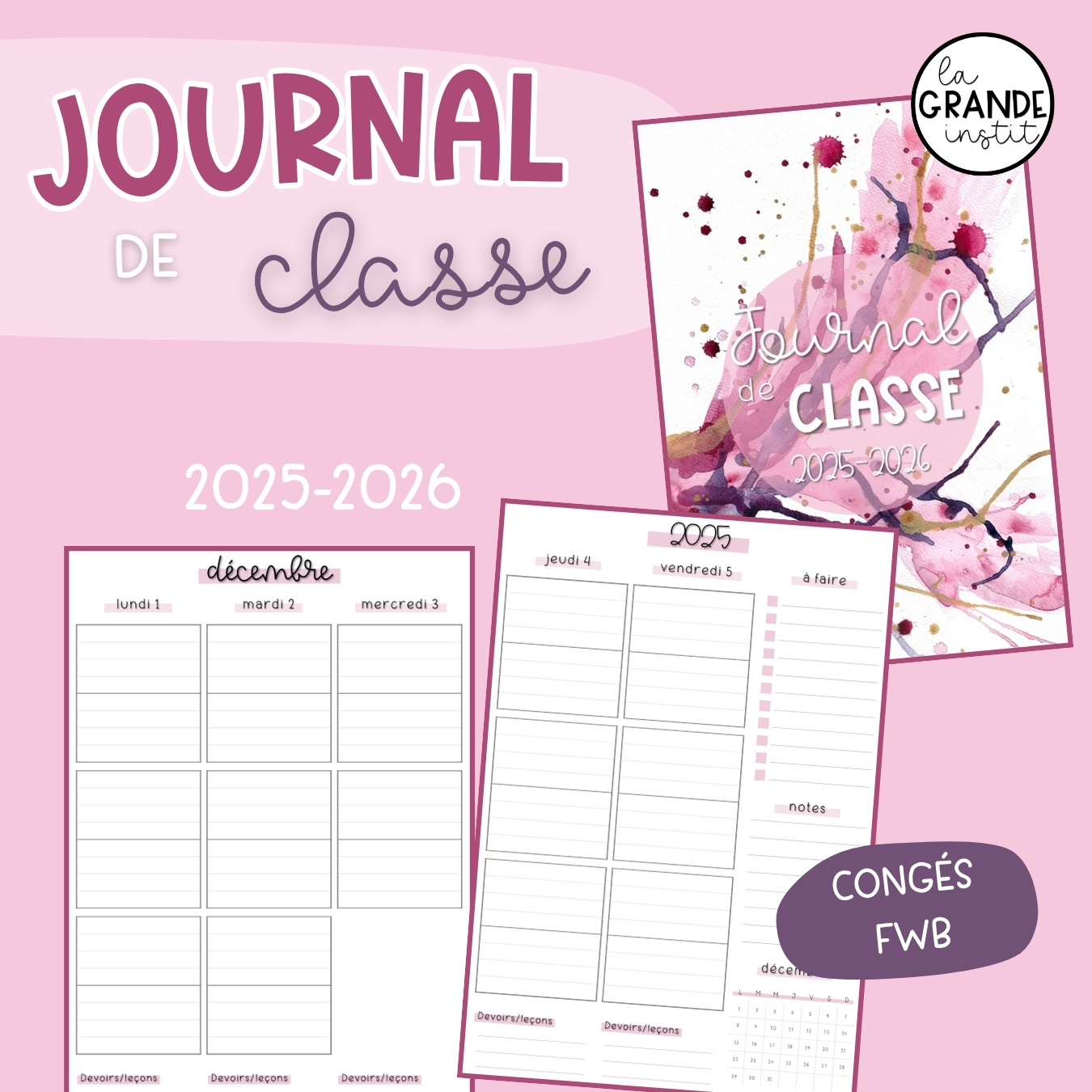 Le journal de classe est divisé en différentes parties (pages de gardes INCLUSES) :