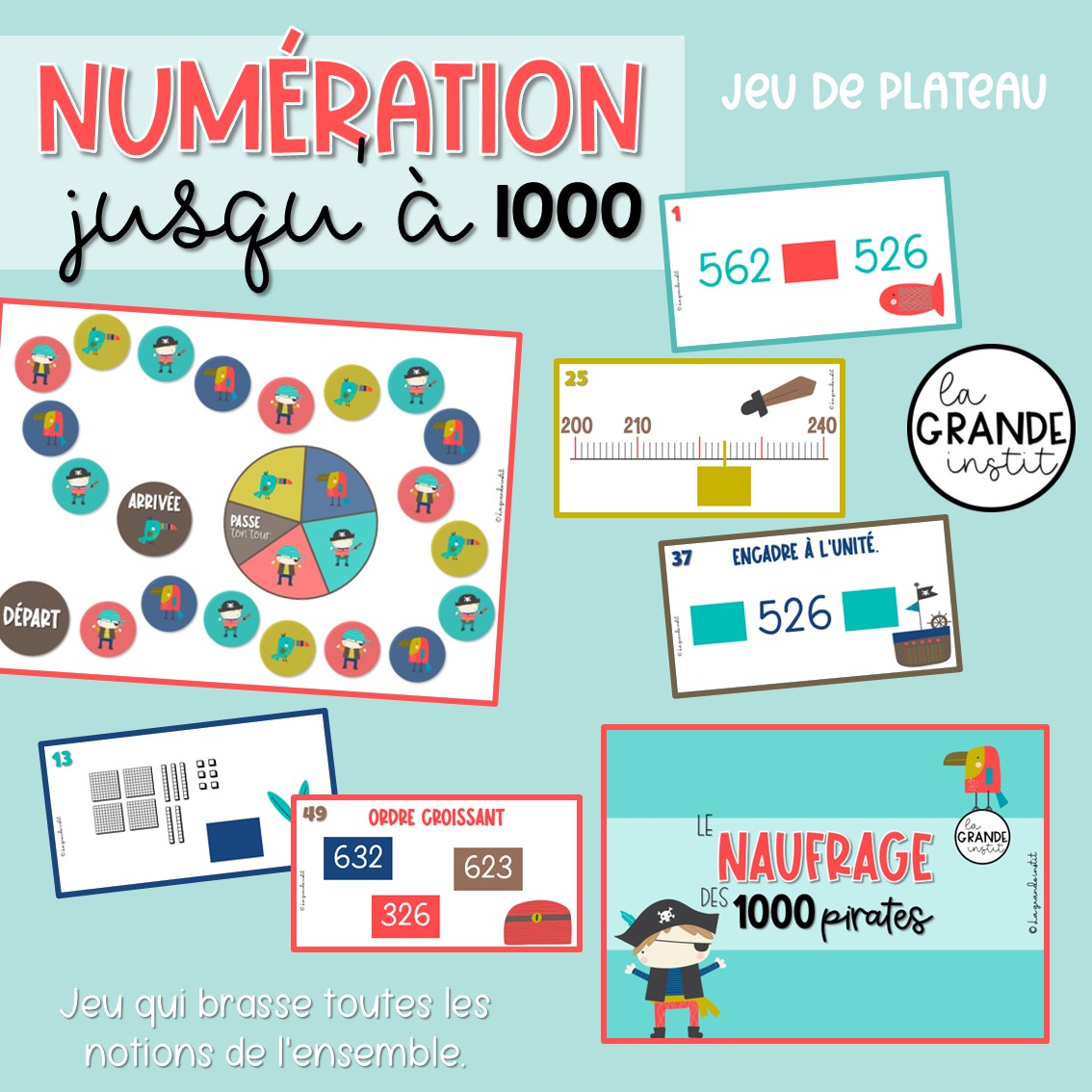 Jeu de plateau pour travailler la numération des nombres jusqu’à 1000.
